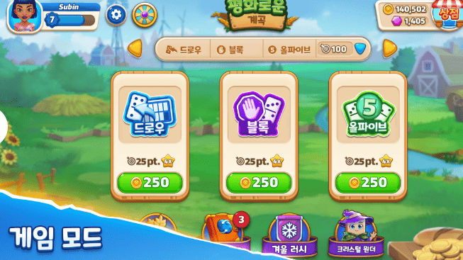 2. 세 가지 인기 모드를 한번에: 가장 대중적으로 사랑받는 블록 도미노 드로우 도미노 도미노 올 파이브 등 세 가지 핵심적인 게임 모드를 모두 탑재하여 자신의 취향에 맞게 골라 즐길 수 있습니다.