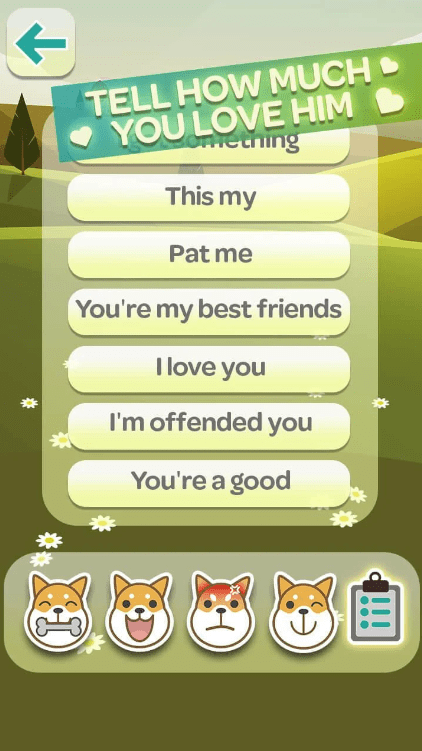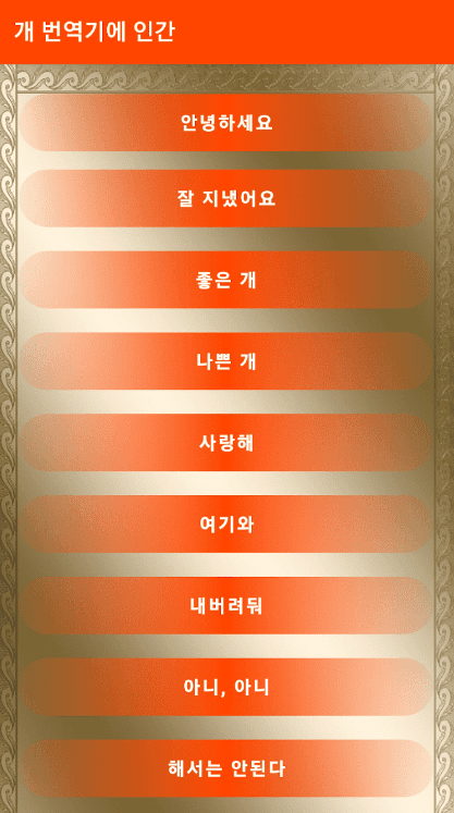 이 멋진 게임은 개 언어 번역기입니다. 우리는 당신을 위해 가장 인기있는 문구를 준비했습니다.