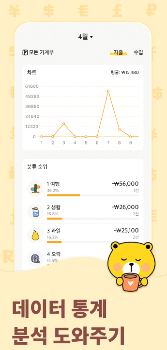 2. 자동 분류 및 그래프 제공: 지출 내역을 자동으로 분류하고, 시각적인 그래프와 통계를 통해 사용자의 지출 패턴을 쉽게 분석할 수 있습니다.