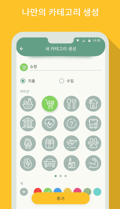 4. 사용자 정의: 템플릿을 사용하거나 자신만의 범주를 만들어 색상을 선택하고 앱을 맞춤 설정할 수 있습니다.