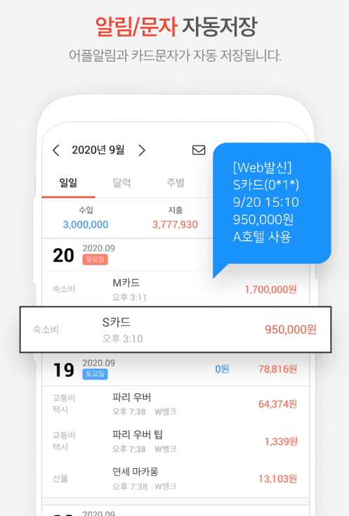 7. 문자 자동화 입력: 자동화 기능을 통해 문자를 입력하여 내역을 자동으로 기록할 수 있습니다.