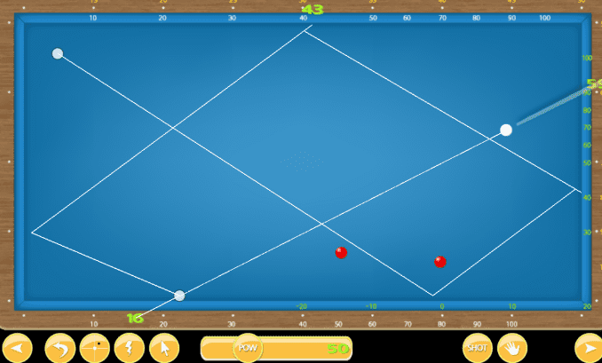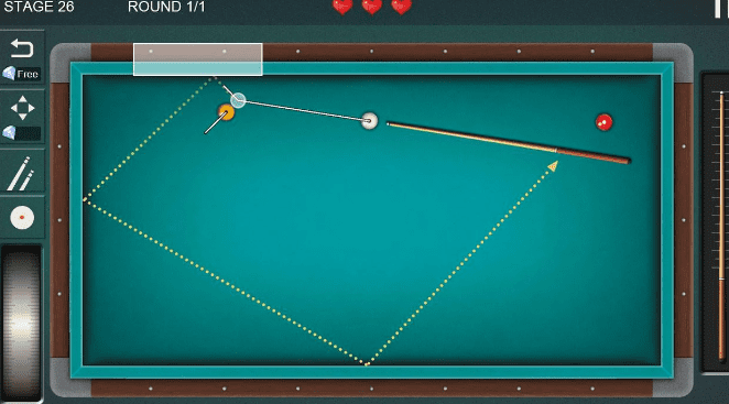 2. 힌트와 해법: 득점에 필요한 요소를 시각적으로 표시하고, 당구공의 이동 경로를 보여주어 이해를 돕습니다.